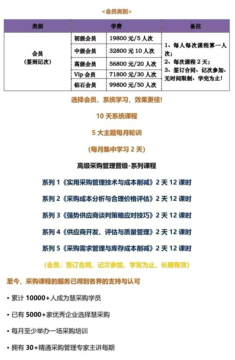 【选择会员更优惠】(会员无时间限制,资料请另行索取) 【联系方式】 主办方:慧采购课程中心 联系人:江老师 联系电话:15825501151(可加微信) 官方网站:www.cjxzx.com